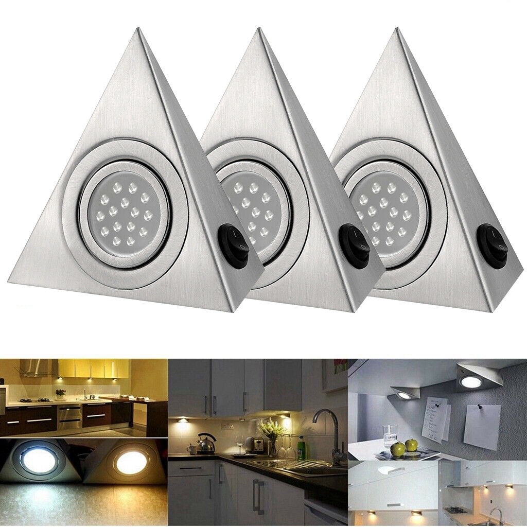 1 3pcs Led Mains Kitchen Under Cabinet Cupboard Triangle Lights