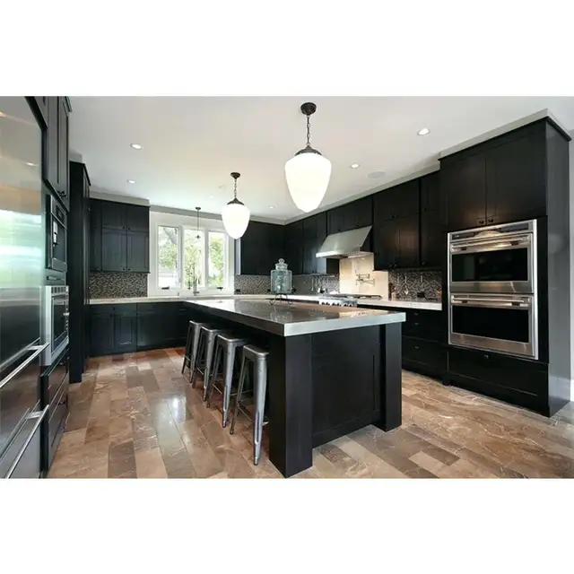 Red Black Solid Wood Kitchen Cabinets With American Standard
