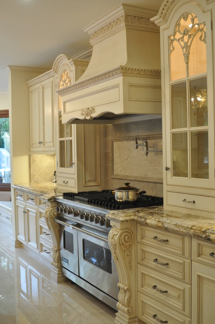 Ornate Traditional White Kitchen With Wood Carved Island Hgtv