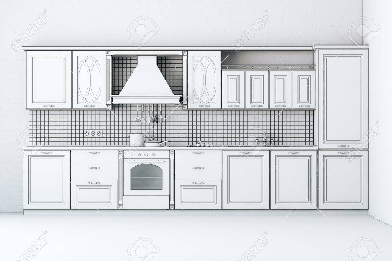 Rough Draft Of Classic Kitchen Cabinet First Version Stock Photo